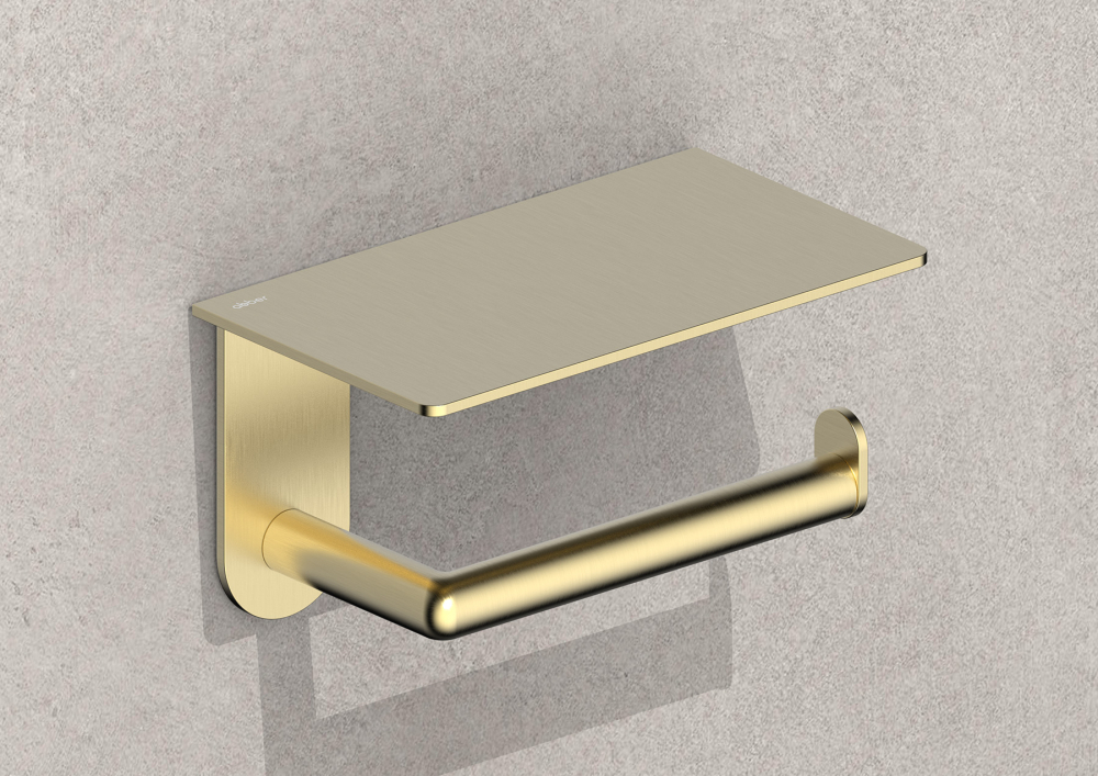 Бумагодержатель с полкой ABBER Pol 316 AA1930BG брашированное светлое золото